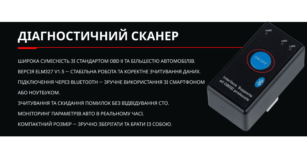 • Сумісність: з більшістю автомобілів, що підтримують OBD II.